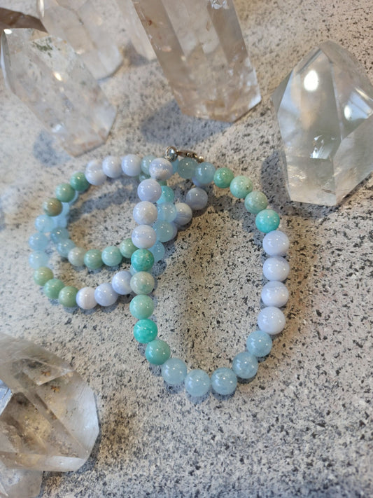 Collana in Calcedonio azzurro, Amazzonite e Acquamarina